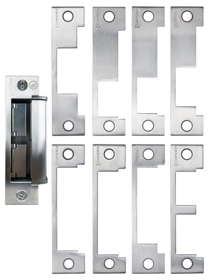 Low Profile, Dual Monitor, Fire Rated Electric Strike, 8 Faceplates, 12/24V AC/DC, Fail Safe/Fail Secure, Grade 1