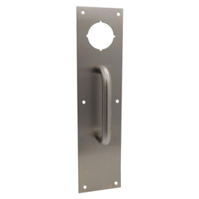 4in x 16in Pull Plate with 1-1/4in Hole for Mortise or Rim Cylinder, 3/4in Diameter Pull, CTC 6in, 628/US28 Satin Aluminum