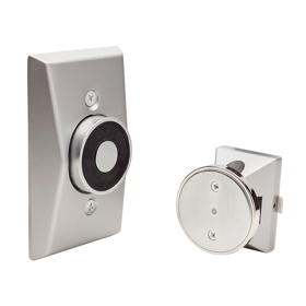 Sentronic Electro-Magnetic Single Door Holder, Low Profile Recessed Wall Mount, 2-5/8in Projection, Tri-Voltage 12V/24V/120V, 35lbs Holding Force, Die Cast Housing, ADA, UL, Wood and Machine Screws, Grade 1, AL/SP28/689 Aluminum Powder Coat