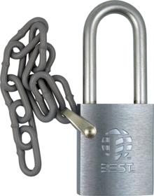 Brass Chrome Plated Padlock, Key Retained, Small Format IC (SFIC) Prep, Less Core, Stainless Steel Shackle 5/16in x 1-1/2in H