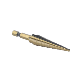 13 Step Drill Bit with 1/4in Quick Change Hex Shank (1/8in-1/2in x 1/32in) Black and Gold, HSS (High Speed Steel)