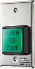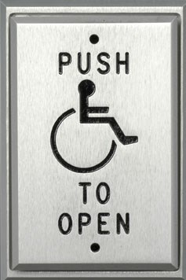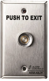 Single Gang, Vandal Resistant Push Plate, Pneumatic Time Delay, 2 to 60 Second Selectable Time Delay, “Push to Exit” Engraved, 12VDC