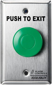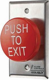 Single Gang, Wall Mount, Request to Exit Egress Station, 1-1/2in Red Mushroom Pushbutton, Momentary Action, 1 N/O and N/C Pair, 10 Amp Contact