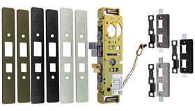 31/32in Backset Electric Deadlatch (Steel Hawk), Non-Handed 12/24VDC, Flat and Radius Faceplates, 3 Finishes – 628/US28 Satin Aluminum and 690/313 Dark Bronze and 693/335 Black Finish