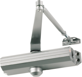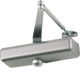 Medium Duty Surface Door Closer, Regular Arm with Parallel Arm Bracket, No Cover, Cast Aluminum, Adjustable Sizes 1-5, Through Bolt, Wood and Machine Screws, ADA, UL, Grade 1, 689/SP28 Painted Aluminum