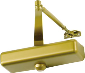 Medium Duty Surface Door Closer, Regular Arm with Parallel Arm Bracket, Slim Line Plastic Cover, Cast Aluminum, Adjustable Sizes 1-5, Through Bolt, Wood and Machine Screws, ADA, UL, Grade 1, 696/BR Painted Brass