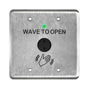 Battery Powered Magic Switch Touchless Plates, Wave to Open, Double Gang Stainless Steel Faceplate, Text and Hand Logo, with Built in 900 MHz Transmitter.