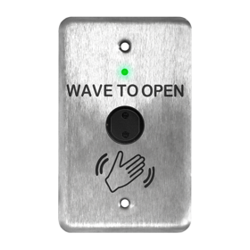 Battery Powered Magic Switch Touchless Plates, Wave to Open, Single Gang Stainless Steel Faceplate, Text and Hand Logo, with Built in 900 MHz Transmitter.