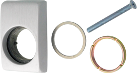 ET25EL – storeroom: (fail safe) Outside lever locked (EL) electronically. Switched power allows outside lever to retract latch(es). Outside key momentarily unlocks outside lever to retract latch(es). Inside push pad is always free for immediate egress.